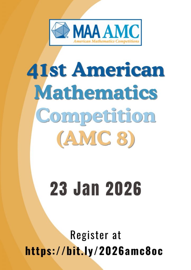 Registration for the 41st American Mathematics Competition 8 (AMC 8) -Y2026 is now open for candidates innn Grades 8 & below as of 1st Jan 2026. Click here to register now >>https://bit.ly/2026amc8oc